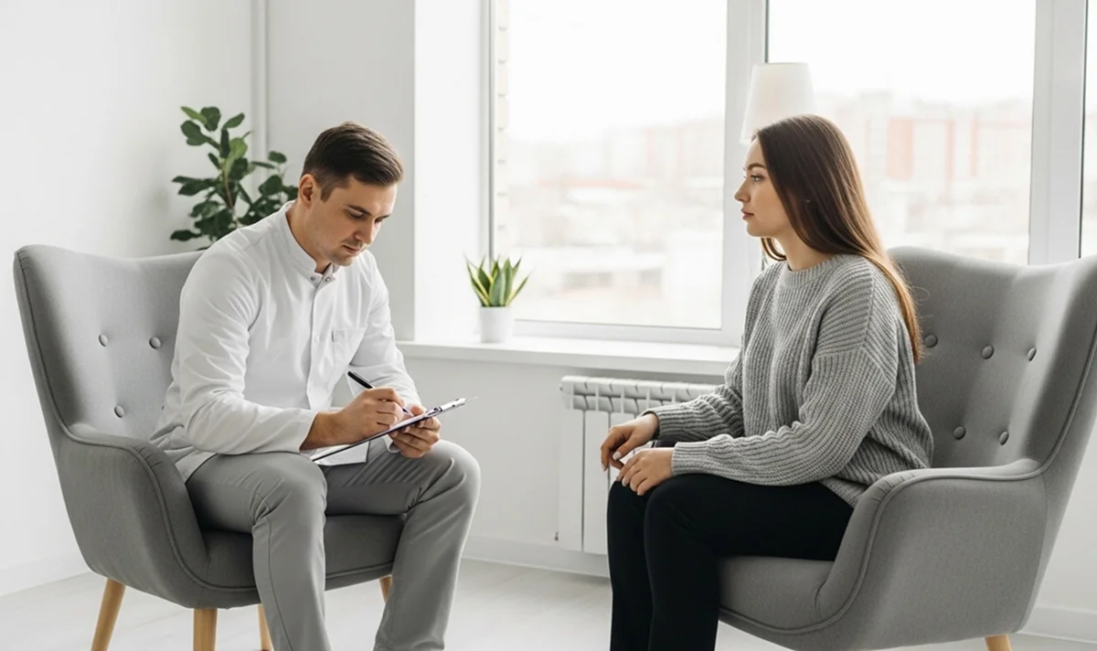 Первичный прием включает беседу с врачом, анализ жалоб и истории болезни, оценку психоэмоционального состояния. При необходимости назначаются тесты, лабораторные исследования или консультации смежных специалистов.